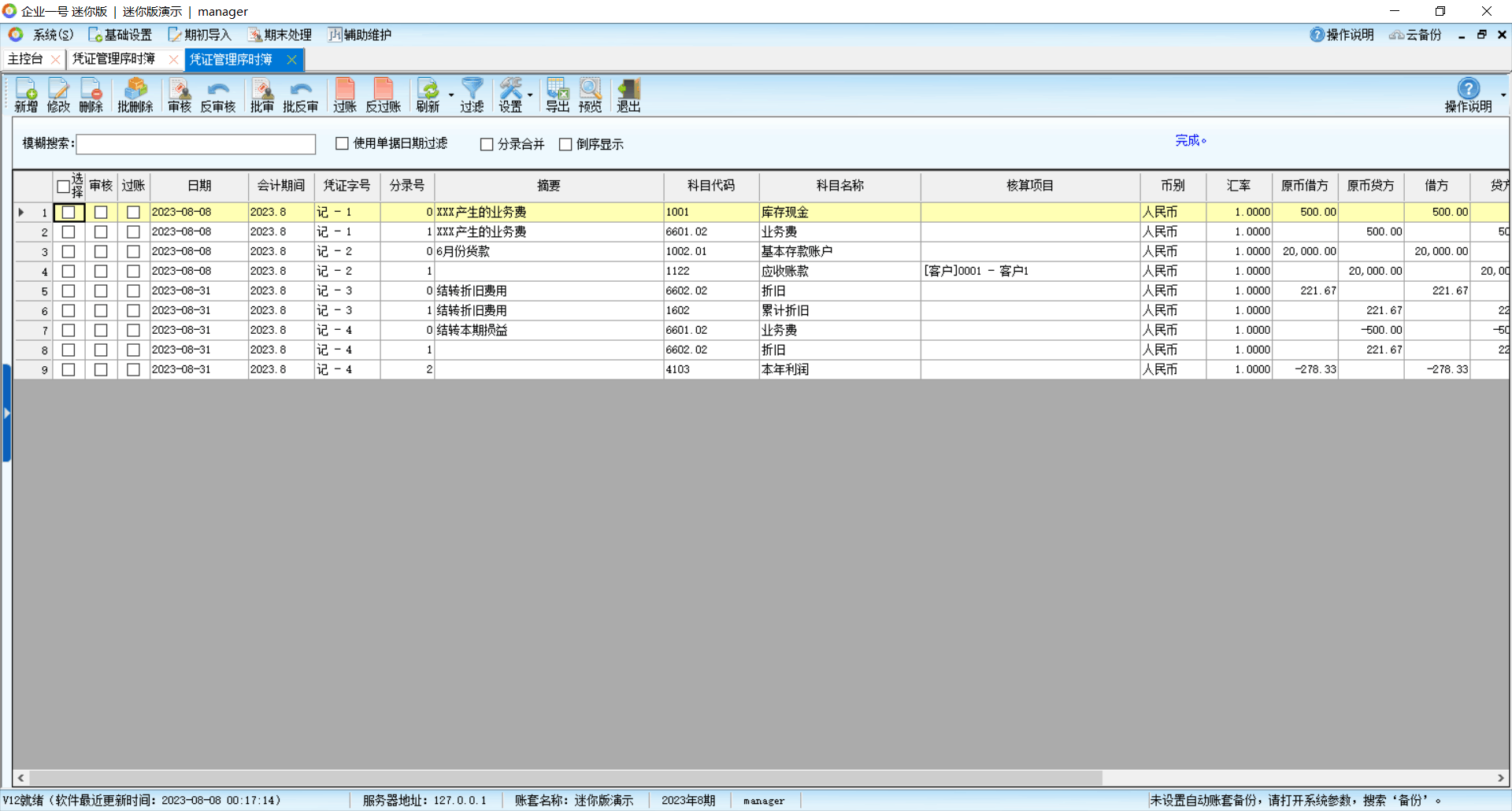 11、凭证过账