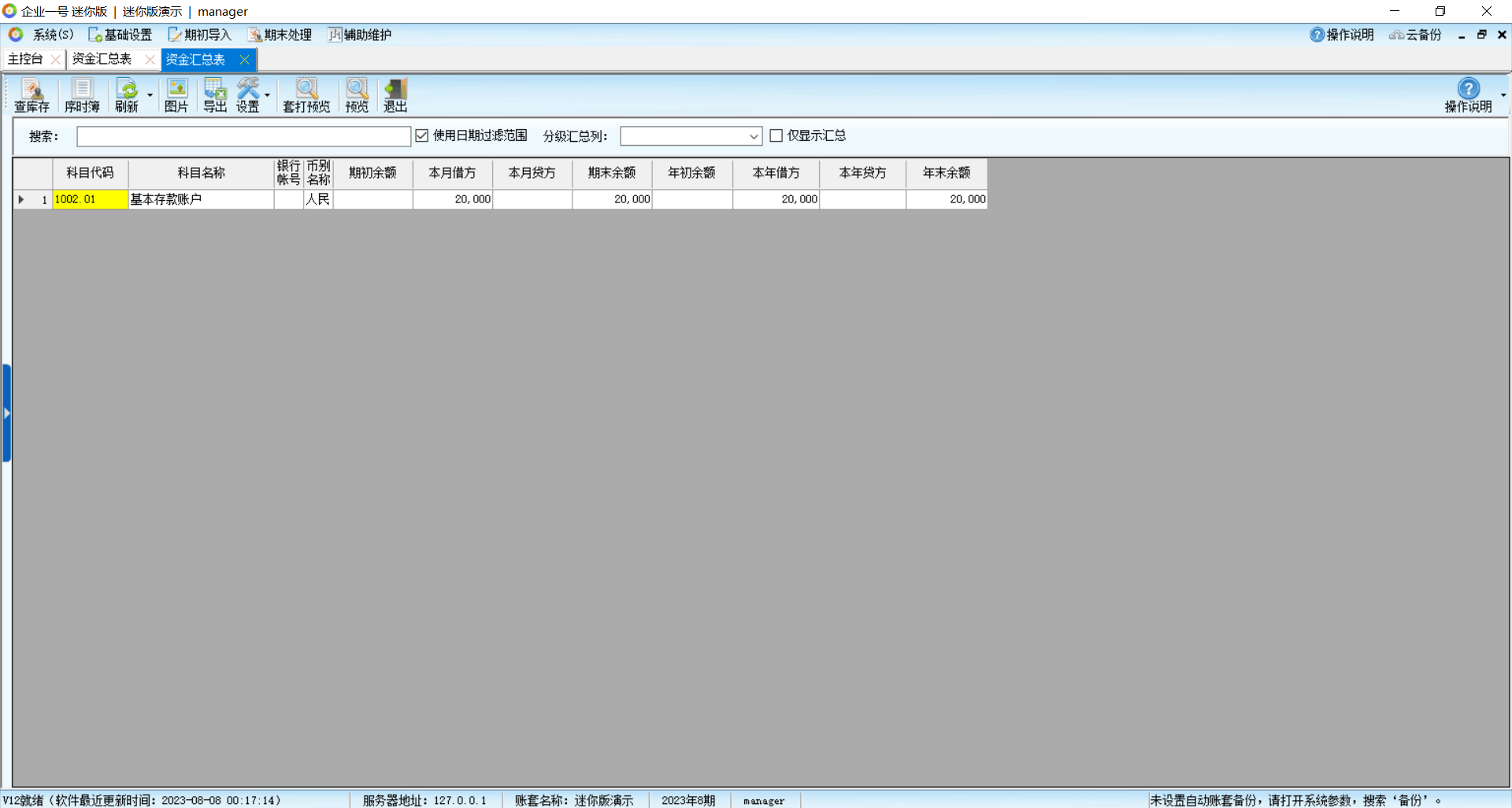 资金汇总表