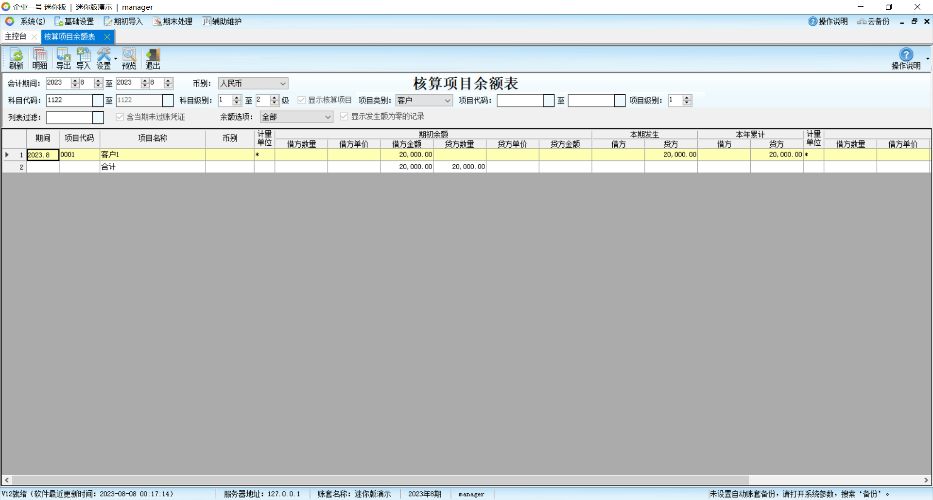 17、核算项目余额表