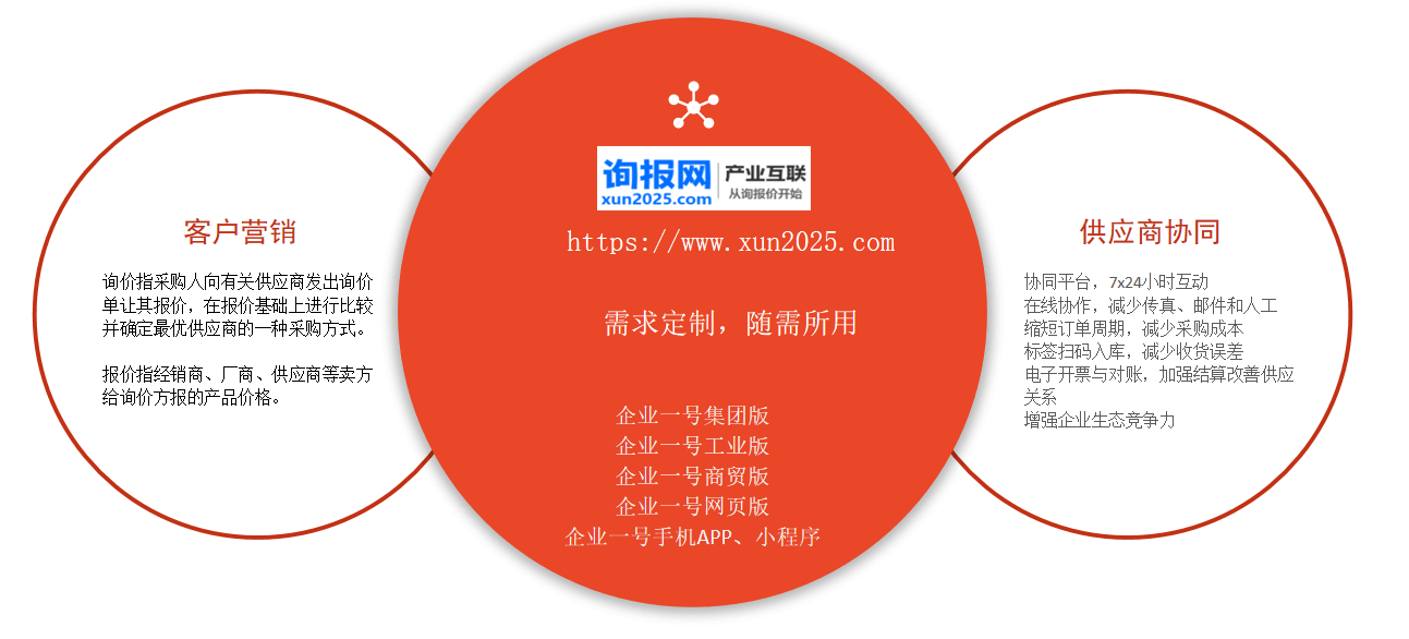 询价 找到最优的价格,减少企业成本,实时报价,资源共享,实现7×24小时的信息互动,下单 打标签送货,财务对账管理,实现与ERP一体化
