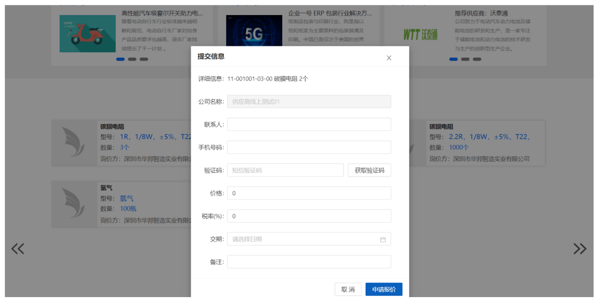 报价 能清楚的知道需求方的物料各种信息,同时能快速对需求进行报价,实现便捷的交互,同时也带来了更多的商机。