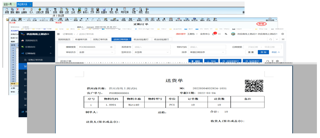 协同:建立账号、客户下单、供应商生成送货单并打印