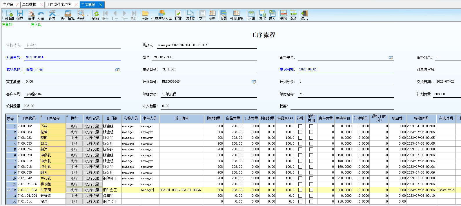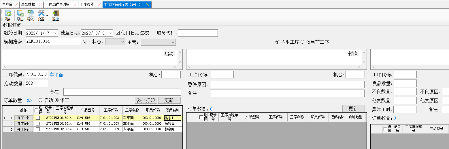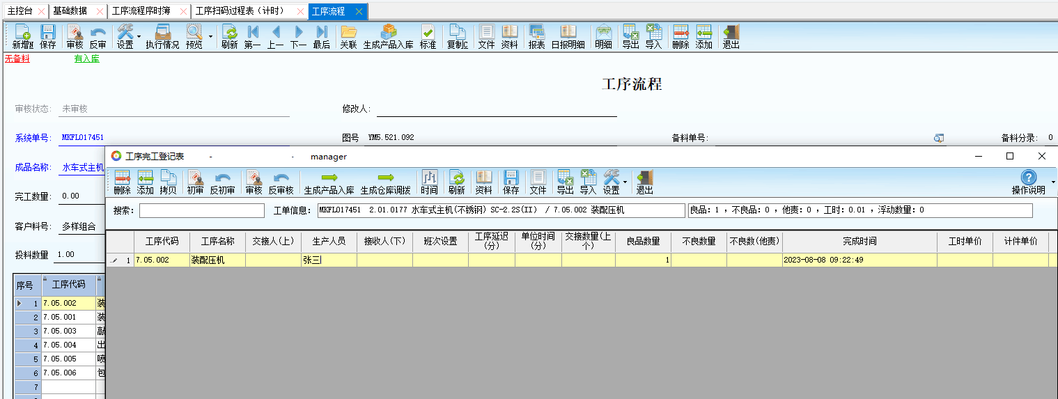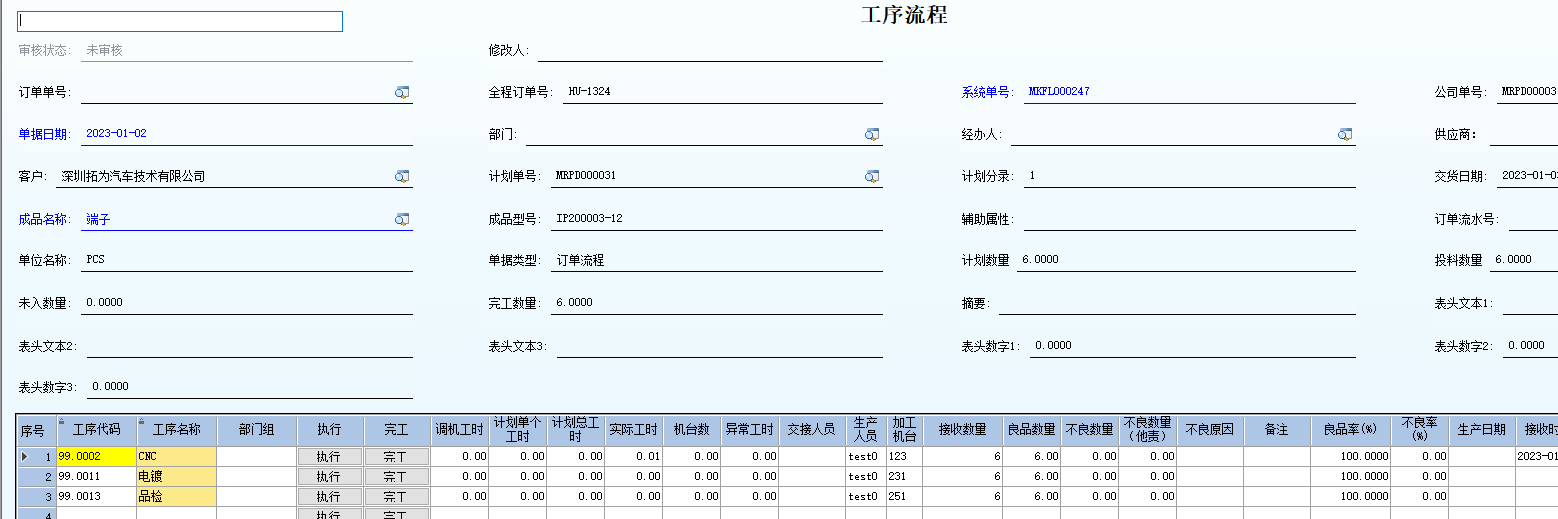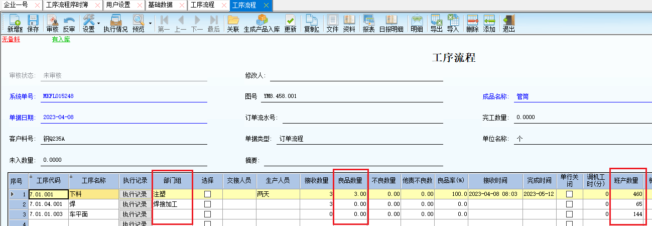 工序流程单中投料数量,即为工序接收数量,其他工序接收数量,为前一工序的良品数量