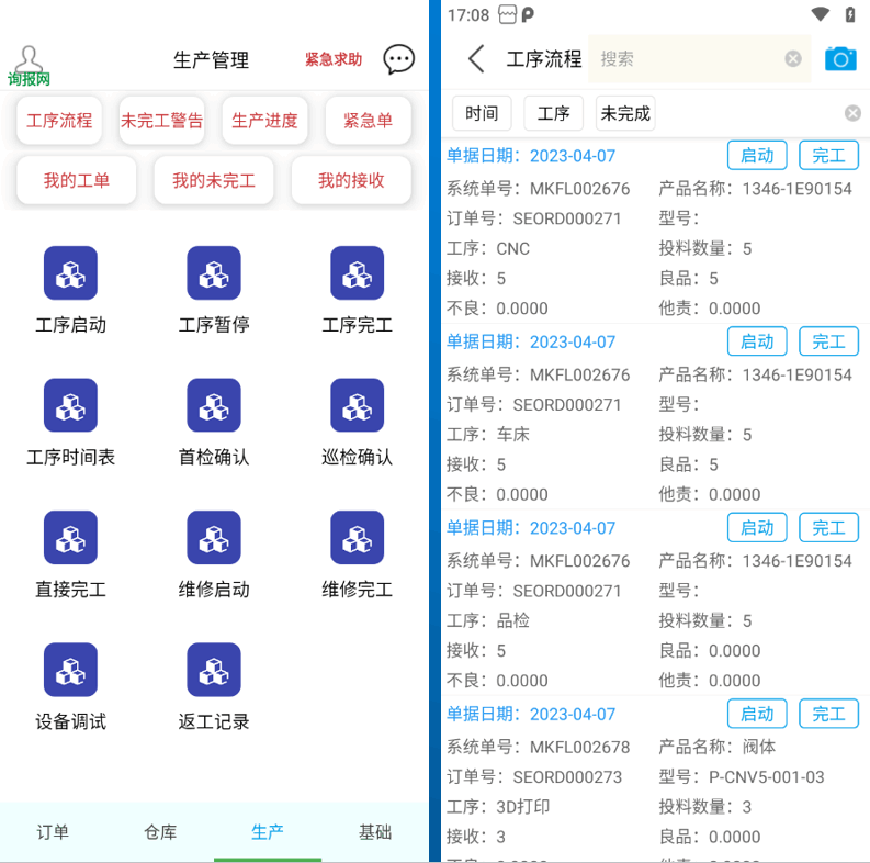 工序分配,工序流程单具体工序分配,以部门为单位,同一部门职员均可看到指派到该部门的工序单,进行完工操作即可