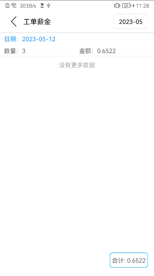 工单薪资显示以日期为汇总依据,以月份为显示范围,并显示当月合计