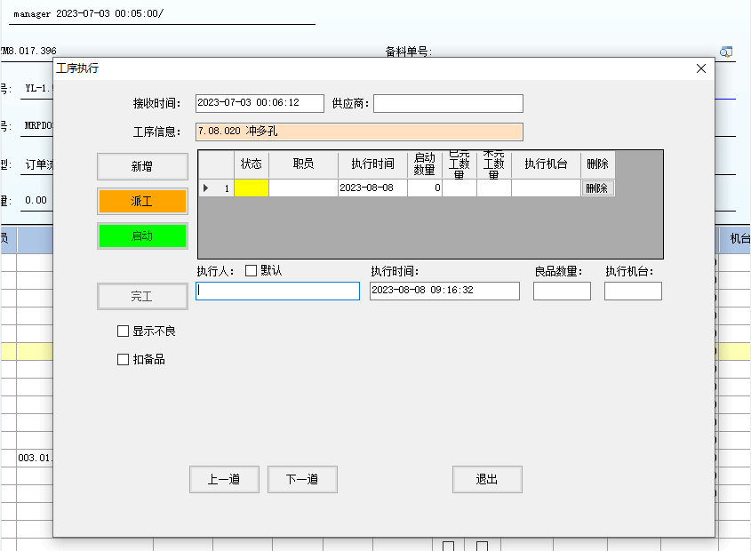 选择工序单的工序,点击执行,双击选择对应职员信息,点击派工即可,此步骤由派工人发起,并非实际开工操作